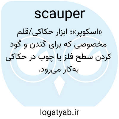اسکاپر، skaw′pėr، اسم. ابزاری با صفحه نیمدایرهای که توسط حکاکان استفاده میشود.