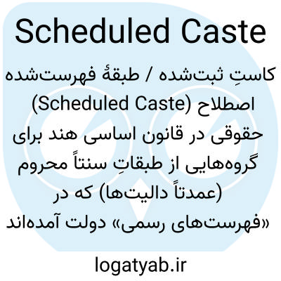 📌 (در هند) نام رسمی که به هر یک از پایینترین طبقات اجتماعی داده میشود که اکنون توسط دولت محافظت میشوند و امتیازات ویژهای به آنها ارائه میشود: اعضای این طبقات قبلاً به عنوان نجس شناخته میشدند.