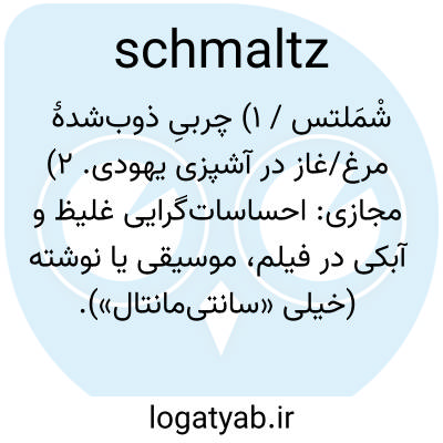 شْمَلتس / ۱) چربیِ ذوب‌شدهٔ مرغ/غاز در آشپزی یهودی. ۲) مجازی: احساسات‌گرایی غلیظ و آبکی در فیلم، موسیقی یا نوشته (خیلی «سانتی‌مانتال»).