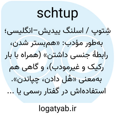 شِتوپ / اسلنگ ییدیش–انگلیسی؛ به‌طور مؤدب: «هم‌بستر شدن، رابطهٔ جنسی داشتن» (همراه با بار رکیک و غیرمودب)، و گاهی هم به‌معنی «هُل دادن، چپاندن». استفاده‌اش در گفتار رسمی یا مودب مناسب نیست.