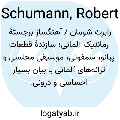 📌 آهنگساز رمانتیک آلمانی قرن نوزدهم (به رمانتیسیسم مراجعه کنید). به یاد ماندنی‌ترین ساخته‌های شومان، قطعات پیانوی او، از جمله «تروماره» و «کشاورز شاد» و آوازهای اوست.