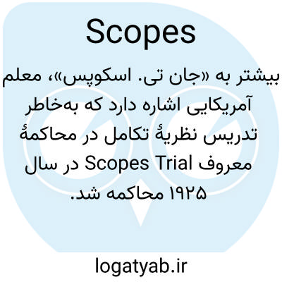 بیشتر به «جان تی. اسکوپس»، معلم آمریکایی اشاره دارد که به‌خاطر تدریس نظریهٔ تکامل در محاکمهٔ معروف Scopes Trial در سال ۱۹۲۵ محاکمه شد.