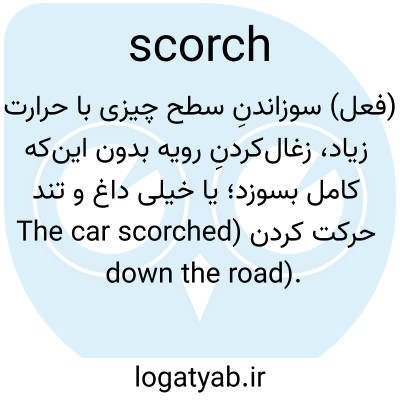 (فعل) سوزاندنِ سطح چیزی با حرارت زیاد، زغال‌کردنِ رویه بدون این‌که کامل بسوزد؛ یا خیلی داغ و تند حرکت کردن (The car scorched down the road).
