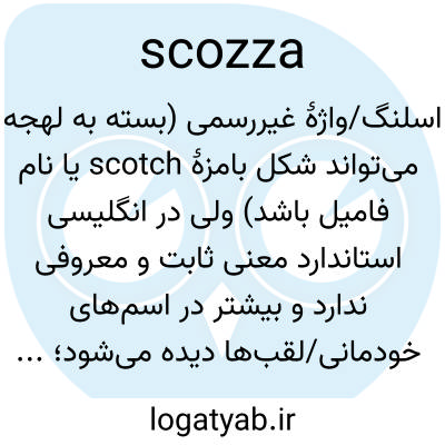 اسلنگ/واژهٔ غیررسمی (بسته به لهجه می‌تواند شکل بامزهٔ scotch یا نام فامیل باشد) ولی در انگلیسی استاندارد معنی ثابت و معروفی ندارد و بیشتر در اسم‌های خودمانی/لقب‌ها دیده می‌شود؛ معنی دقیقش را باید از متن فهمید.
