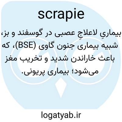📌 یک بیماری مغزی معمولاً کشنده در گوسفندان که با انقباض گردن و سر، ساییدن دندانها و خراشیدن قسمتهای خارشدار پوست در تماس با اشیاء ثابت و متعاقباً ریزش پشم مشخص میشود: تصور میشود که توسط یک پریون عفونی ایجاد میشود.