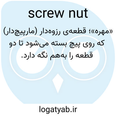 «مهره»؛ قطعه‌ی رزوه‌دار (مارپیچ‌دار) که روی پیچ بسته می‌شود تا دو قطعه را به‌هم نگه دارد.