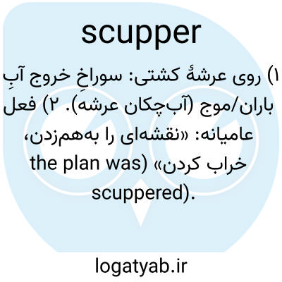 ۱) روی عرشهٔ کشتی: سوراخِ خروج آبِ باران/موج (آب‌چکان عرشه). ۲) فعل عامیانه: «نقشه‌ای را به‌هم‌زدن، خراب کردن» (the plan was scuppered).