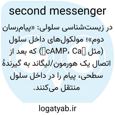 📌 هر یک از مواد شیمیایی مختلف درون سلولی، مانند AMP حلقوی، که پیام‌های دریافتی از یک پیام‌رسان اولیه را به گیرنده‌های خاص روی سطح سلول منتقل و تقویت می‌کنند.