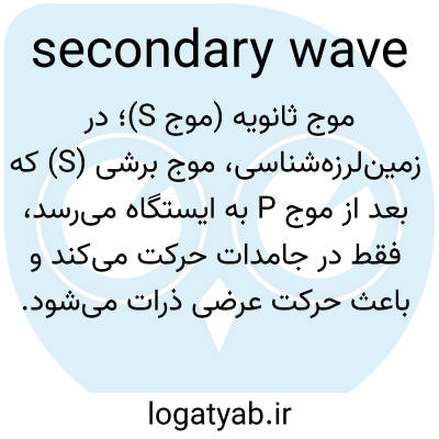 📌 نوعی موج لرزهای پیکری که در آن ذرات سنگ در زاویه قائمه نسبت به جهت حرکت موج ارتعاش میکنند. امواج ثانویه باعث تغییر شکل سنگهایی میشوند که از آنها عبور میکنند. این امواج دومین امواج لرزهای سریع (بعد از امواج اولیه) هستند و میتوانند از جامدات عبور کنند اما نمیتوانند از مایعات یا گازها عبور کنند.