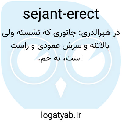 📌 (از یک حیوان) که به صورت نشسته و قائم با پاهای جلویی بلند نشان داده شده است.