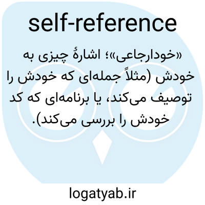 📌 منطق.، ویژگی یک گزاره که گزارهای درباره خودش است، مانند «این گزاره دستوری است».