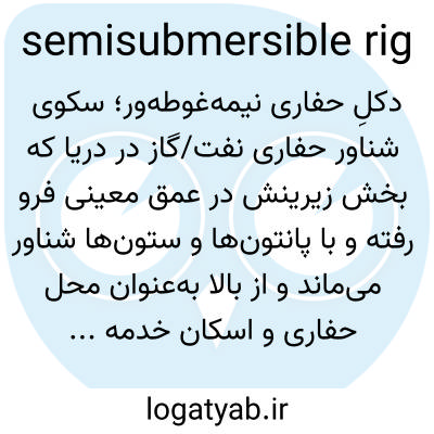 📌 گاهی اوقات به صورت خلاصه: نیمه شناور. (در صنعت نفت) نوعی سکوی حفاری که توسط پانتونهای زیر آب پشتیبانی میشود و بخش عمدهای از ساختار آن برای پایداری در بادهای شدید، زیر خط آب قرار دارد: معمولاً فقط برای حفاری اکتشافی نفت یا گاز استفاده میشود.