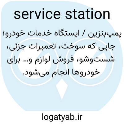 📌 همچنین به آن پمپ بنزین گفته میشود. مکانی مجهز برای سرویس خودروها، مانند فروش بنزین و روغن، انجام تعمیرات و غیره.