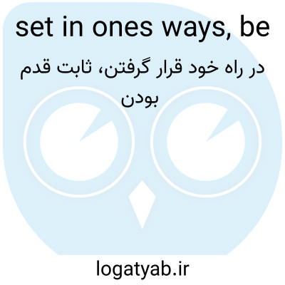📌 انعطاف‌ناپذیر بودن، ثابت قدم بودن در عادات، مانند «او در روش‌هایش آنقدر ثابت قدم است که نمی‌تواند بیرون برود و یک سگ بخرد». این اصطلاح از کلمه set به معنای «در یک موقعیت سفت و سخت» استفاده می‌کند، کاربردی که قدمت آن به حدود سال ۱۳۰۰ میلادی برمی‌گردد.