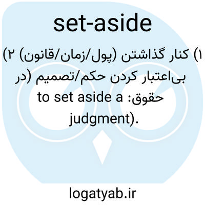 ۱) کنار گذاشتن (پول/زمان/قانون) ۲) بی‌اعتبار کردن حکم/تصمیم (در حقوق: to set aside a judgment).