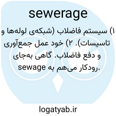 ۱) سیستم فاضلاب (شبکه‌ی لوله‌ها و تاسیسات). ۲) خود عمل جمع‌آوری و دفع فاضلاب. گاهی به‌جای sewage هم به‌کار می‌رود.