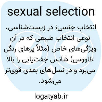 📌 نوع خاصی از انتخاب طبیعی که در آن جنس‌ها اشکال متمایزی به خود می‌گیرند، یا به این دلیل که اعضای یک جنس جفت‌هایی با ویژگی‌های خاص انتخاب می‌کنند یا به این دلیل که در رقابت برای جفت‌گیری بین اعضای یک جنس، فقط آن‌هایی که ویژگی‌های خاصی دارند موفق می‌شوند.
