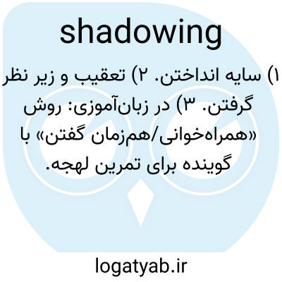۱) سایه انداختن. ۲) تعقیب و زیر نظر گرفتن. ۳) در زبان‌آموزی: روش «همراه‌خوانی/هم‌زمان گفتن» با گوینده برای تمرین لهجه.