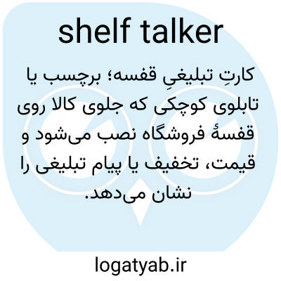 📌 یک تبلیغ مقوایی، کاغذی یا پلاستیکی از یک محصول که برای چسباندن به قفسه‌ای که محصول برای فروش در آن به نمایش گذاشته شده است، طراحی شده است.