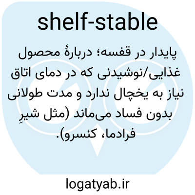 پایدار در قفسه؛ دربارهٔ محصول غذایی/نوشیدنی که در دمای اتاق نیاز به یخچال ندارد و مدت طولانی بدون فساد می‌ماند (مثل شیرِ فرادما، کنسرو).