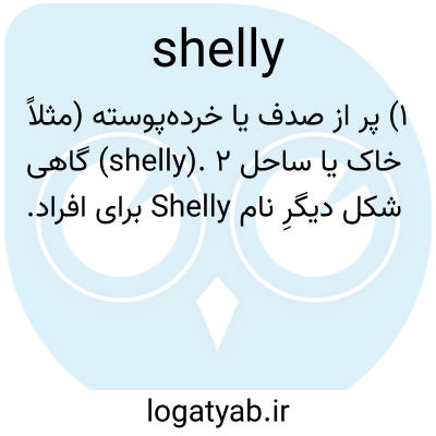 ۱) پر از صدف یا خرده‌پوسته (مثلاً خاک یا ساحل shelly). ۲) گاهی شکل دیگرِ نام Shelly برای افراد.