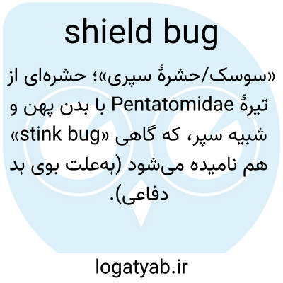 📌 همچنین به آن حشره بدبو گفته میشود. هر حشره گیاهخوار سپرمانند و دوبال از بالاخانواده Pentamoidea، به ویژه هر یک از حشرات خانواده Pentatomidae