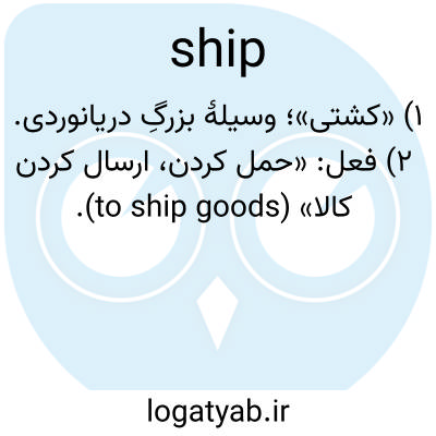 ۱) «کشتی»؛ وسیلهٔ بزرگِ دریانوردی. ۲) فعل: «حمل کردن، ارسال کردن کالا» (to ship goods).