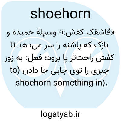 «قاشقک کفش»؛ وسیلهٔ خمیده و نازک که پاشنه را سر می‌دهد تا کفش راحت‌تر پا برود؛ فعل: به زور چیزی را توی جایی جا دادن (to shoehorn something in).