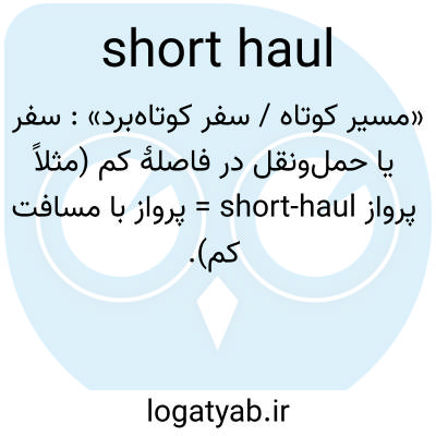 📌 معمولاً به سفرهای کوتاه مدت اشاره دارد یا به سفر یا حمل بار یا مسافر در مسافت‌های کوتاه، به ویژه با کامیون یا هواپیما مربوط می‌شود: خطوط هوایی کوتاه مدت.