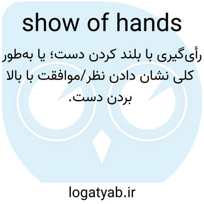 📌 نشانهای از تأیید، عدم تأیید، داوطلب شدن و غیره، از سوی گروهی از مردم، که معمولاً توسط هر فرد موافق که دستش را بالا میبرد، انجام میشود.