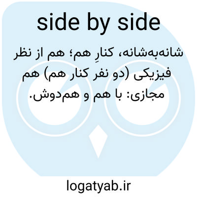 📌 در کنار هم، نزدیک به هم، مانند آنچه در فیلم «آنها داشتند کنار هم در خیابان قدم میزدند که تاکسی از لبهی جدول پرید»، یا «در روسیهی جدید، کمونیسم و سرمایهداری تلاش میکنند در کنار هم زندگی کنند.» [حدود ۱۲۰۰ میلادی]