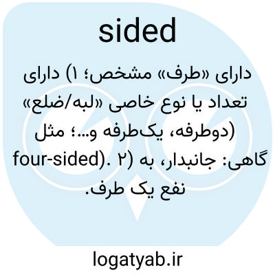 دارای «طرف» مشخص؛ ۱) دارای تعداد یا نوع خاصی «لبه/ضلع» (دوطرفه، یک‌طرفه و…؛ مثل four-sided). ۲) گاهی: جانبدار، به نفع یک طرف.