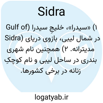 ۱) «سیدرا»، خلیجِ سیدرا (Gulf of Sidra) در شمال لیبی، بازوی دریای مدیترانه. ۲) همچنین نام شهری بندری در ساحل لیبی و نام کوچکِ زنانه در برخی کشورها.