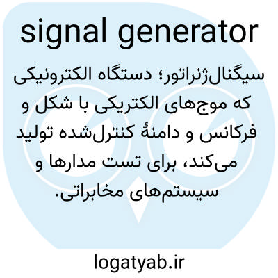 سیگنال‌ژنراتور؛ دستگاه الکترونیکی که موج‌های الکتریکی با شکل و فرکانس و دامنهٔ کنترل‌شده تولید می‌کند، برای تست مدارها و سیستم‌های مخابراتی.