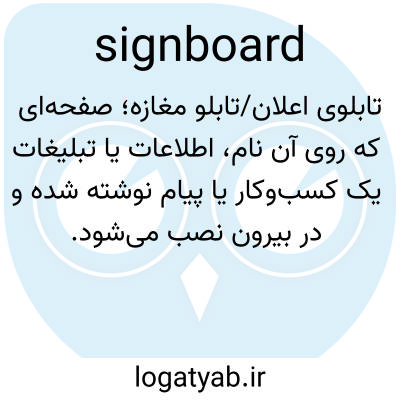 تابلوی اعلان/تابلو مغازه؛ صفحه‌ای که روی آن نام، اطلاعات یا تبلیغات یک کسب‌وکار یا پیام نوشته شده و در بیرون نصب می‌شود.