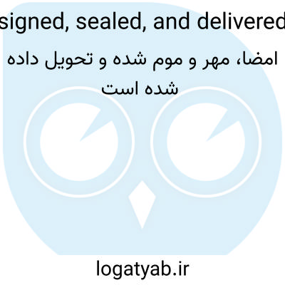 📌 به طور رضایت‌بخشی تکمیل شد، مانند عبارت «خانه فروخته شد - امضا، مهر و موم شد و تحویل داده شد». این اصطلاح به یک سند قانونی اشاره دارد که برای معتبر بودن باید توسط فروشنده امضا، با مهر موم شده و به مالک جدید تحویل داده شود. این اصطلاح در نیمه اول دهه 1900 به طور آزادانه‌تری مورد استفاده قرار گرفت.