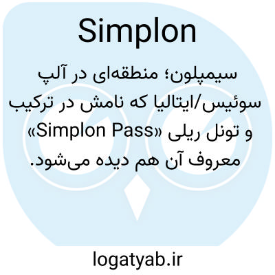 سیمپلون؛ منطقه‌ای در آلپ سوئیس/ایتالیا که نامش در ترکیب «Simplon Pass» و تونل ریلی معروف آن هم دیده می‌شود.