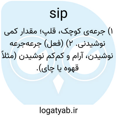 ۱) جرعه‌ی کوچک، قلپ؛ مقدار کمی نوشیدنی. ۲) (فعل) جرعه‌جرعه نوشیدن، آرام و کم‌کم نوشیدن (مثلاً قهوه یا چای).