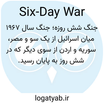 📌 جنگی که در ژوئن ۱۹۶۷ بین اسرائیل و کشورهای همسایه مصر، اردن و سوریه درگرفت و در آن اسرائیل بخش‌های وسیعی از سرزمین‌های عربی را تصرف کرد.