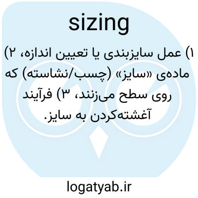 ۱) عمل سایزبندی یا تعیین اندازه، ۲) ماده‌ی «سایز» (چسب/نشاسته) که روی سطح می‌زنند، ۳) فرآیند آغشته‌کردن به سایز.