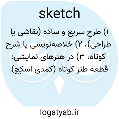 📌 یک نقاشی یا طراحی ساده یا عجولانه، به ویژه یک طرح اولیه که ویژگیهای اساسی را بدون جزئیات ارائه میدهد.
