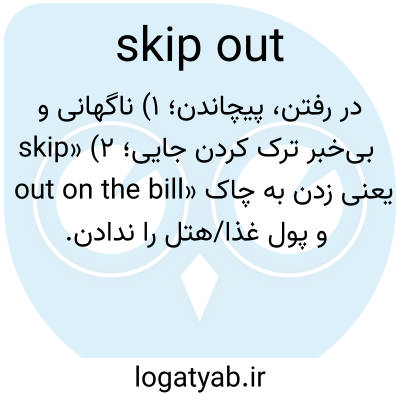 📌 با عجله رفتن، فرار کردن، مانند «آنها همین الان از شهر بیرون رفتند». همچنین به صورت skip out on به معنی «رها کردن، رها کردن» نیز استفاده می‌شود، مانند «او از همسرش فرار کرد و او را با چهار فرزند تنها گذاشت». [عامیانه؛ نیمه دوم دهه ۱۸۰۰]