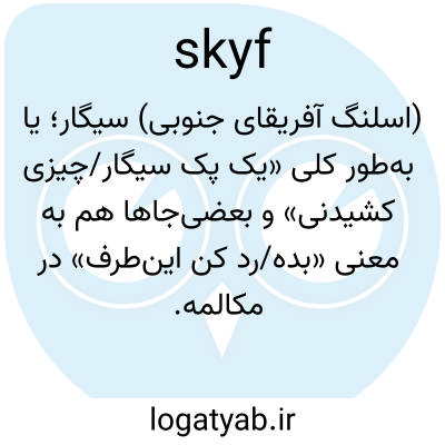 در زبان عامیانه آفریقای جنوبی، اسکای‌اف به دود کردن سریعی گفته می‌شود که معمولاً با دوستان به اشتراک گذاشته می‌شود و به سرعت تمام می‌شود.