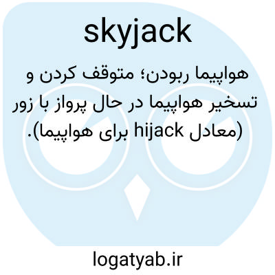 📌 ربودن (هواپیما)، به خصوص به منظور گروگان گرفتن مسافران و هواپیما برای باج گیری یا به دلایل سیاسی.