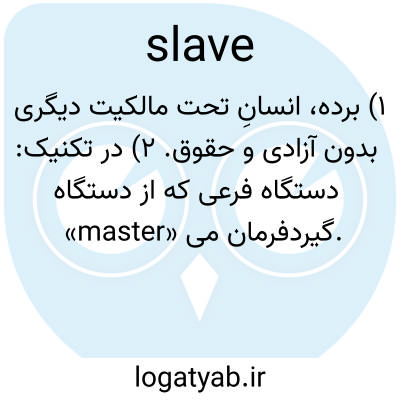 ۱) برده، انسانِ تحت مالکیت دیگری بدون آزادی و حقوق. ۲) در تکنیک: دستگاه فرعی که از دستگاه «master» فرمان می‌گیرد.