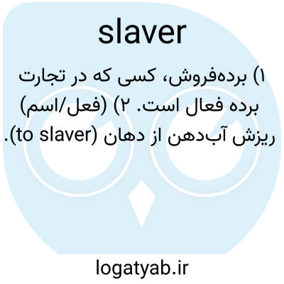 ۱) برده‌فروش، کسی که در تجارت برده فعال است. ۲) (فعل/اسم) ریزش آب‌دهن از دهان (to slaver).