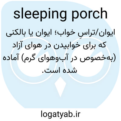 📌 ایوانی محصور با شیشه یا توری یا اتاقی با کنارههای باز یا ردیفی از پنجرهها که برای خوابیدن در هوای آزاد استفاده میشود.