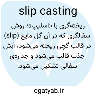 📌 فرآیندی در سفالگری که در آن گِلِ نیمهمایعشده را در قالب گچی میریزند.