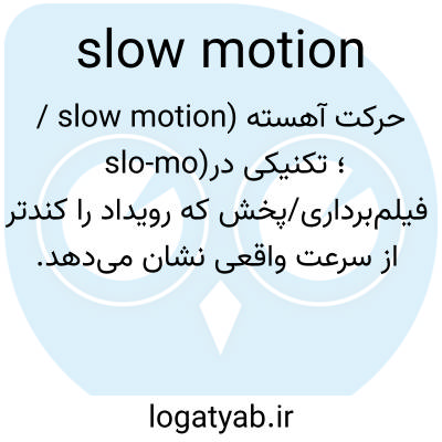 📌 فرآیند یا تکنیک فیلمبرداری یا ضبط یک فیلم سینمایی یا سریال تلویزیونی با سرعت زیاد و سپس نمایش یا پخش مجدد آن با سرعت عادی به طوری که به نظر برسد صحنه آهسته شده است.