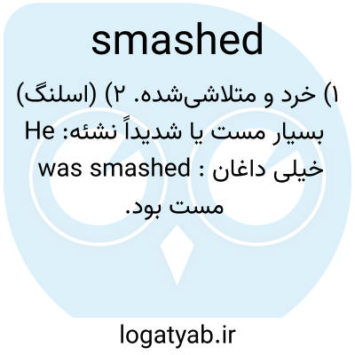 ۱) خرد و متلاشی‌شده. ۲) (اسلنگ) بسیار مست یا شدیداً نشئه: He was smashed : خیلی داغان مست بود.